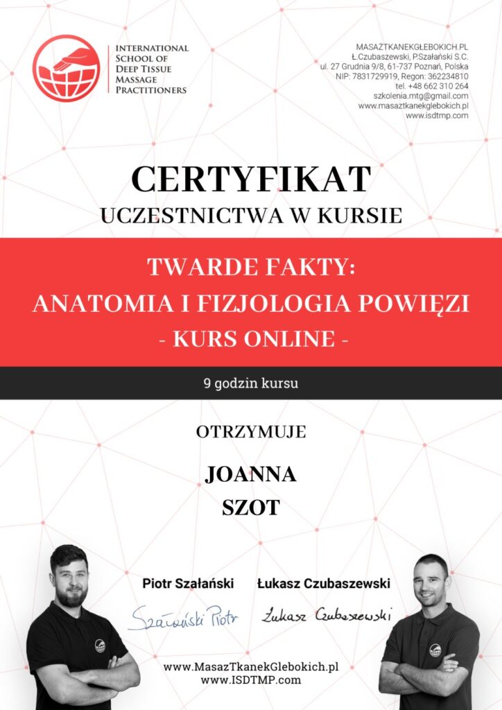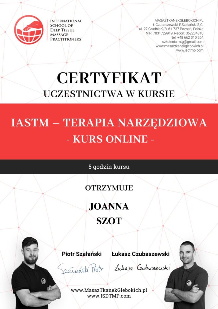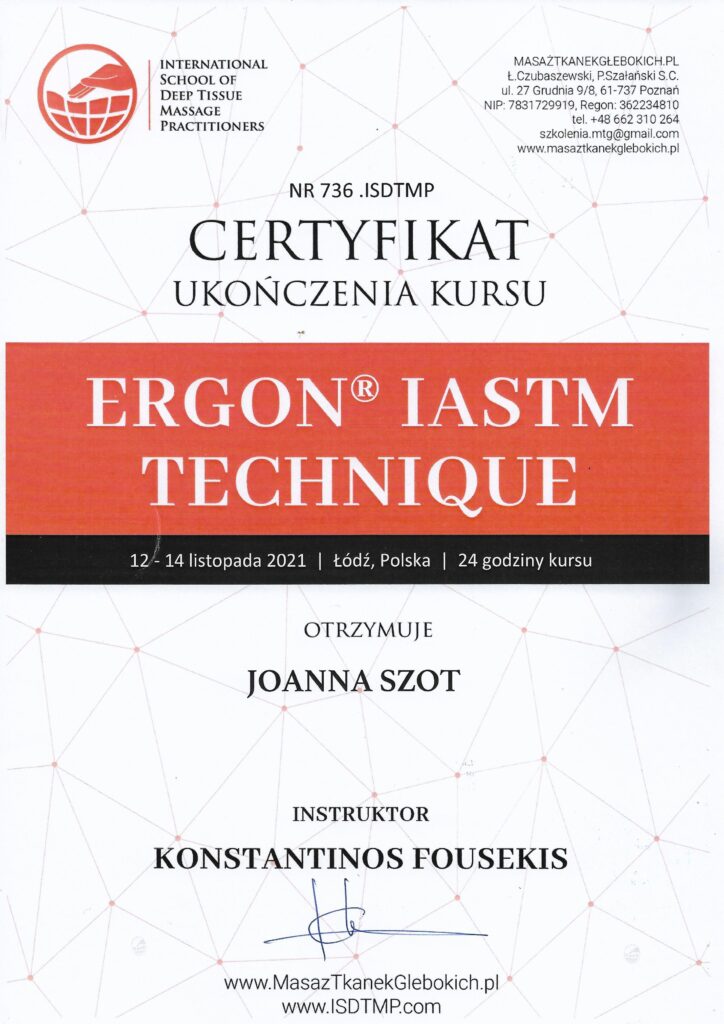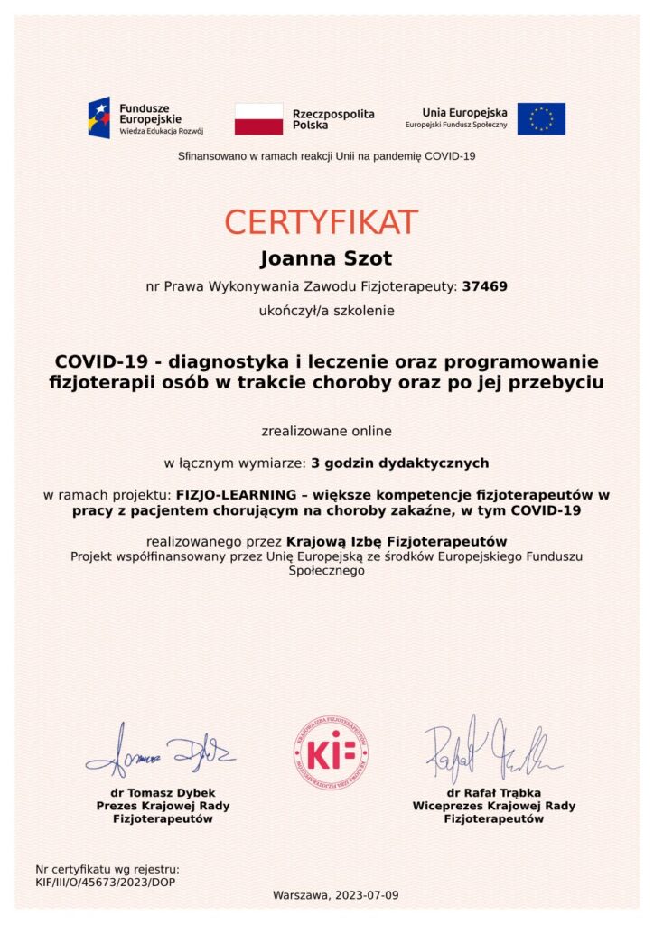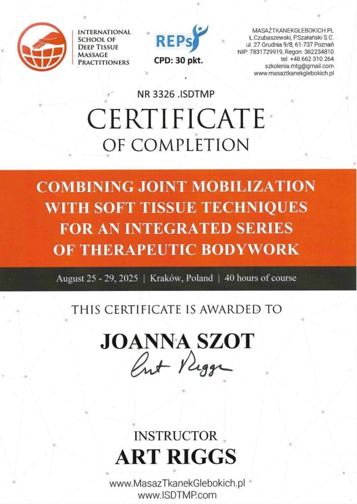 Jestem fizjoterapeutką pracującą w swoim zawodzie nieprzerwanie od 1995r. W roku 2012 założyłam swój własny gabinet wyposażony w specjalistyczny sprzęt służący do wykonywania wszystkich zabiegów z działu fizykoterapii i kinezyterapii jak również masażu klasycznego i limfatycznego