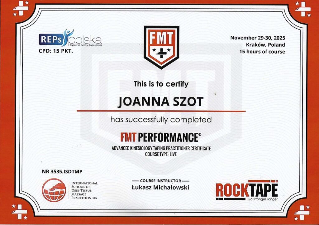 wykorzystanie moich umiejętności w ćwiczeniach z dorosłymi, dziećmi oraz osobami niepełnosprawnymi.